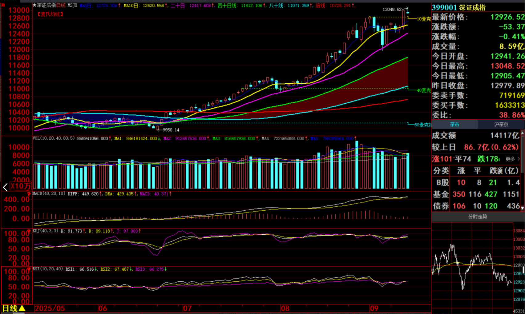 周五的盘面演绎,放在日K线分析会创新高后稳定量修整不需要再放大量,同时小涨小跌不影响原来的趋势演变,最重要是周K线多方掌握绝对优势,不管是沪市的上证指数,或深市的深证成指,或是创业板指数都符合周线上涨优势的特征,即使周五没有大肆放大量强势拔高上涨也不影响原来的趋向,但下周就会进入关键变数周,务必随时关注。