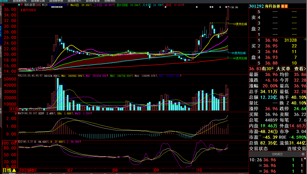 海科新源:若跌破涨停价(36.96元)的5%(即35.11元),止损;
