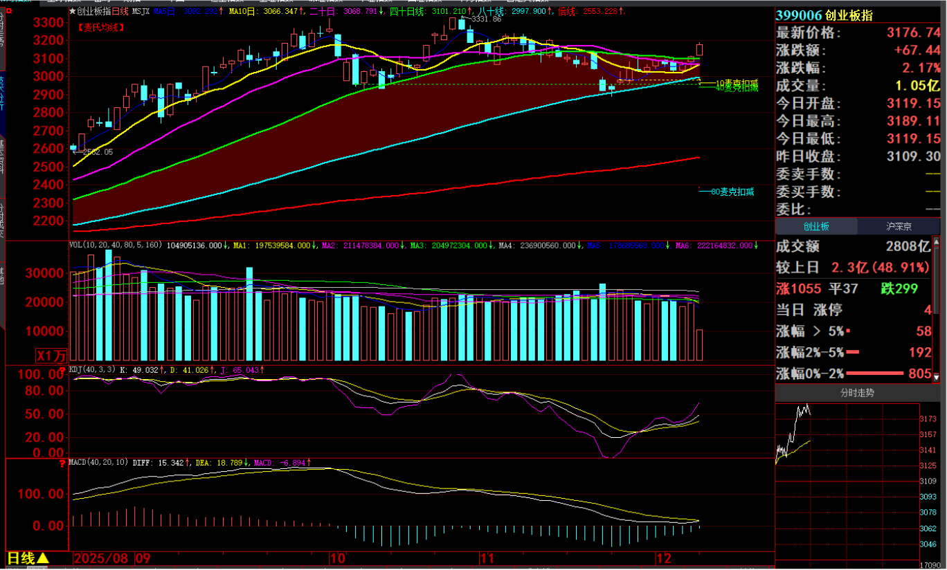 政策利好激发周一A股的强势高开,这个特征反应在创业板指数上最为明显,符合前面本栏分析谈到的状况,创业板市场滚动换手量提前打底完成,才有今天周一的启动与涨势。