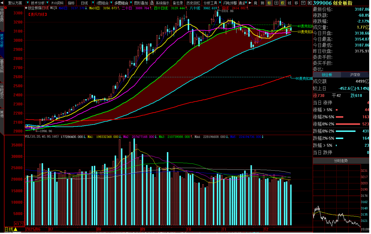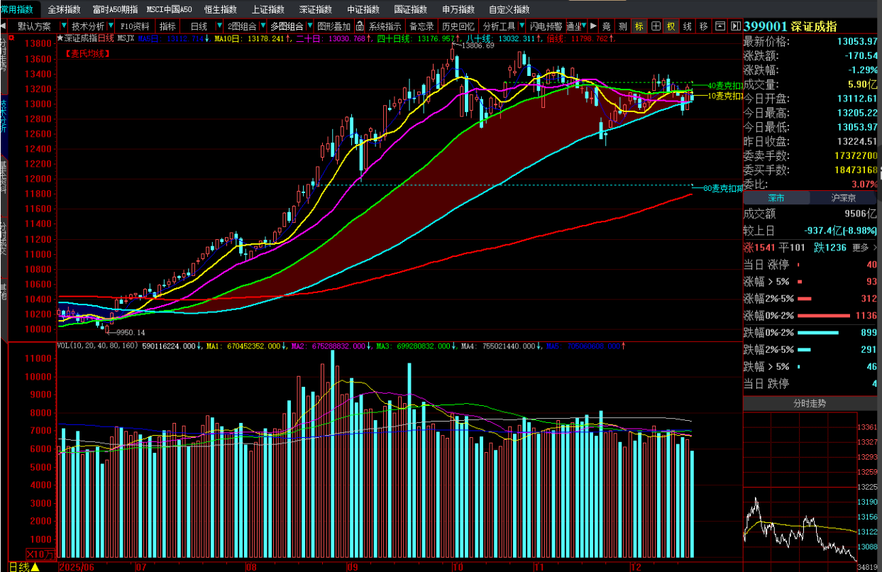 这部份的判断在于回测80日均线下沿部份,但80日均线还在推升助涨。第二部分是40日均线是否已经拐头向下?如果是,例如上证指数确实是,但深证成指或创业板指数并没有,所以沪市上证指数的助跌动作更大于深市。