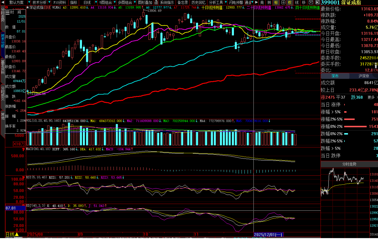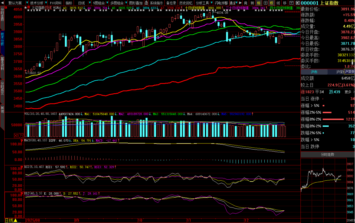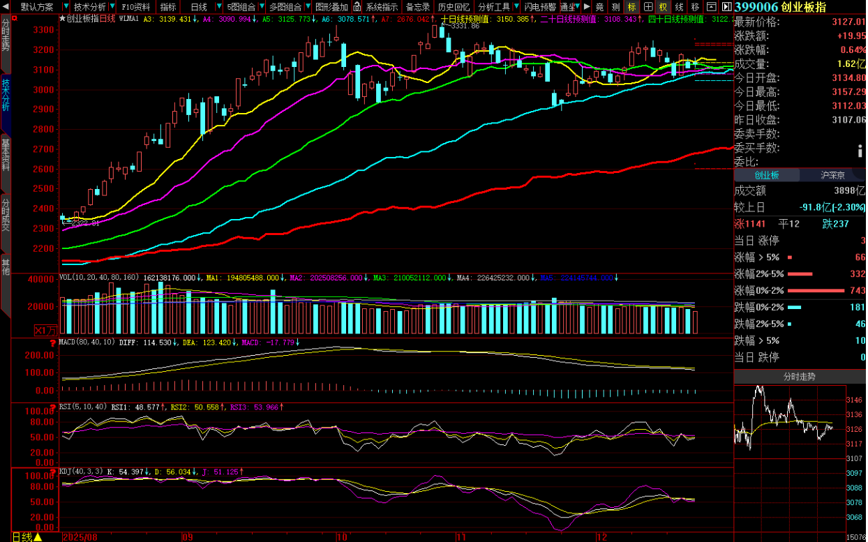 40日线从2025年12月16日已经确认拐头向下,当天80日线仍在推升但股价直掼而下,虽然两条线尚未形成死叉,但需警惕“一跌一涨”到“同步下跌”的过程演变,最终必然会同步交叉助跌,此时就会进入“空头助跌”。