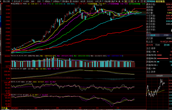 长线的MACD最重要在于80日均线的支撑助涨应用,本栏不管是上证指数或深证成指,甚或创业板指数都再80日均线获得支撑,然后强势拔高上扬。