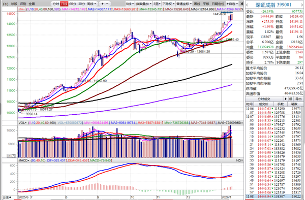 连续连个交易日A股的成交金额都超过三万亿元创新高,周一沪市成交金额达到14462亿元,周二成交金额14816亿元,接近2024年10月8日当时的15105亿元。
