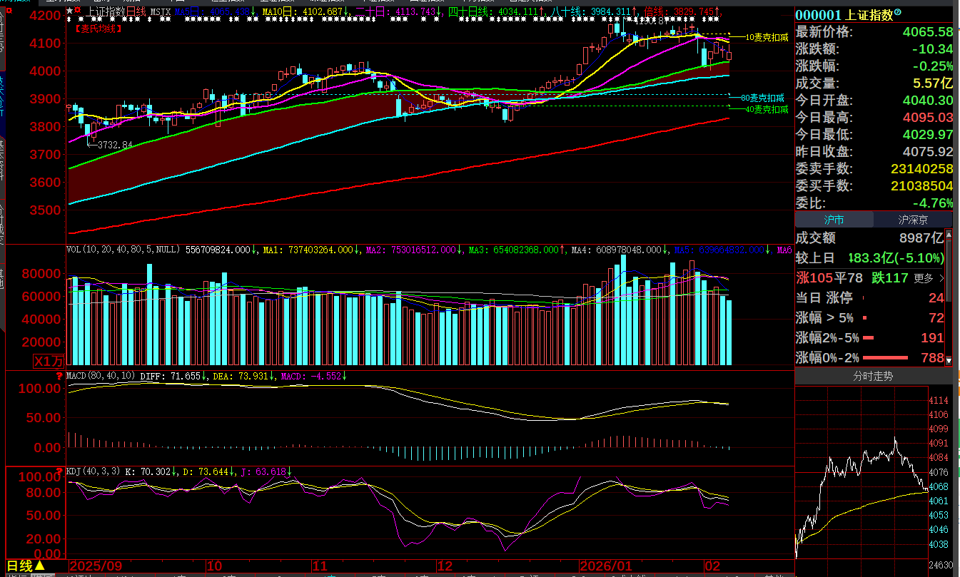 本周的A股行情走势偏弱,上证指数低于20日均线以下,但又正好在40日均线上方。说它是偏弱下跌,因为低于20日均线进入第五天,依据【麦氏理论】统计,不排除会在未来三个交易日内突然间出现莫名其妙一次追杀,直接跌破40~80日均线以下。