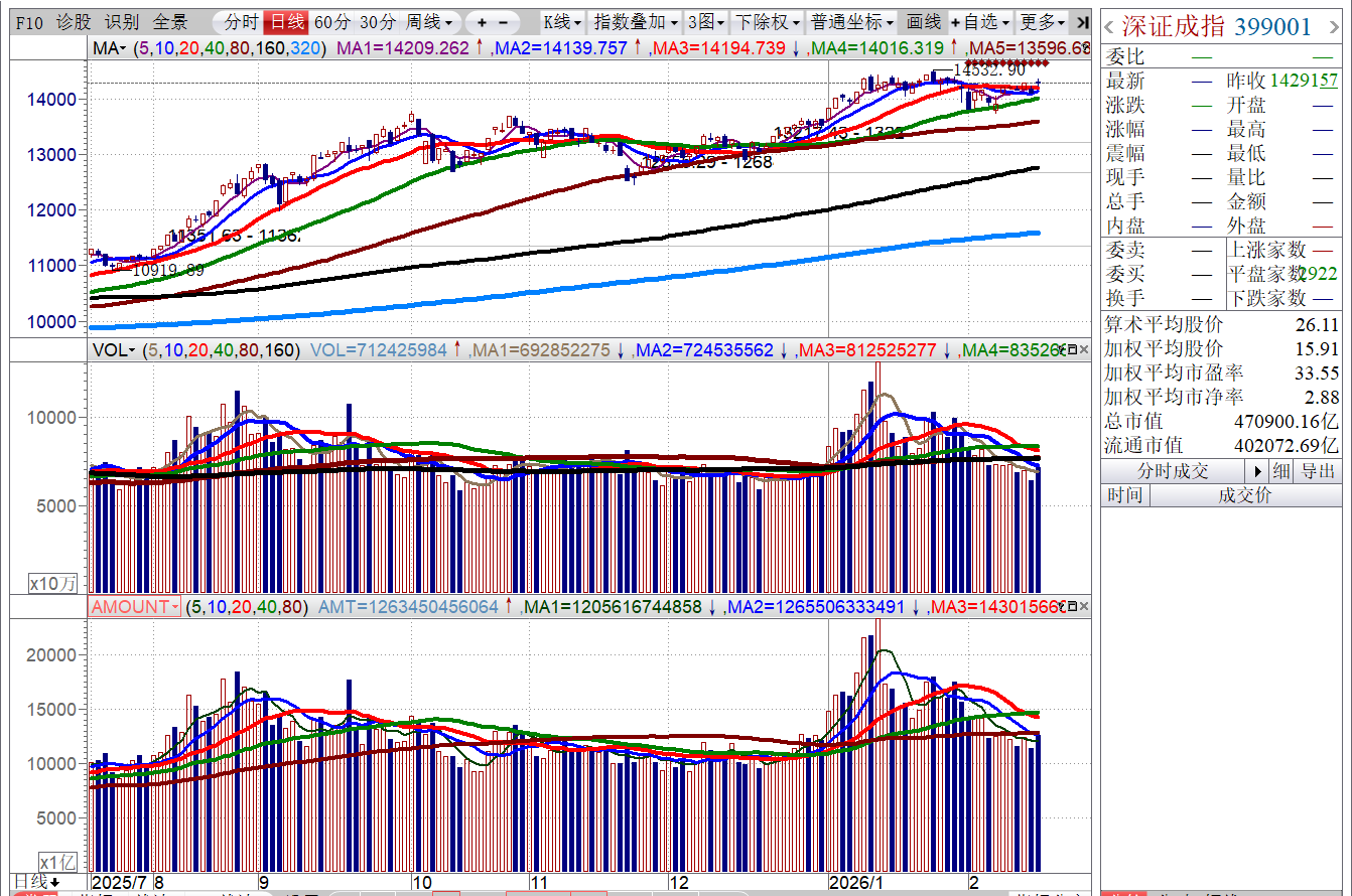 上证指数一样俱备稳定增量后强势突破上涨的优势,新一轮周期涨势从2026年1月5日开始,前后运行达到31天,所以这个阶段的涨势可以延续到40~44天,预计未来9~13个交易日都属于明显偏涨的量潮演绎结构。