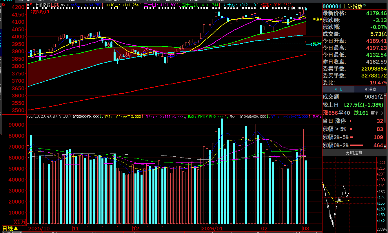 解读周二的盘势,必须先谈周一涨势,因为基础在周一,尤其是周一开盘前,整个市场弥漫着非常不确定的操作心理,几乎,绝大多数散户股民都看跌,理由很简单:美以打伊朗战事会扩大,全球陷入不稳定。