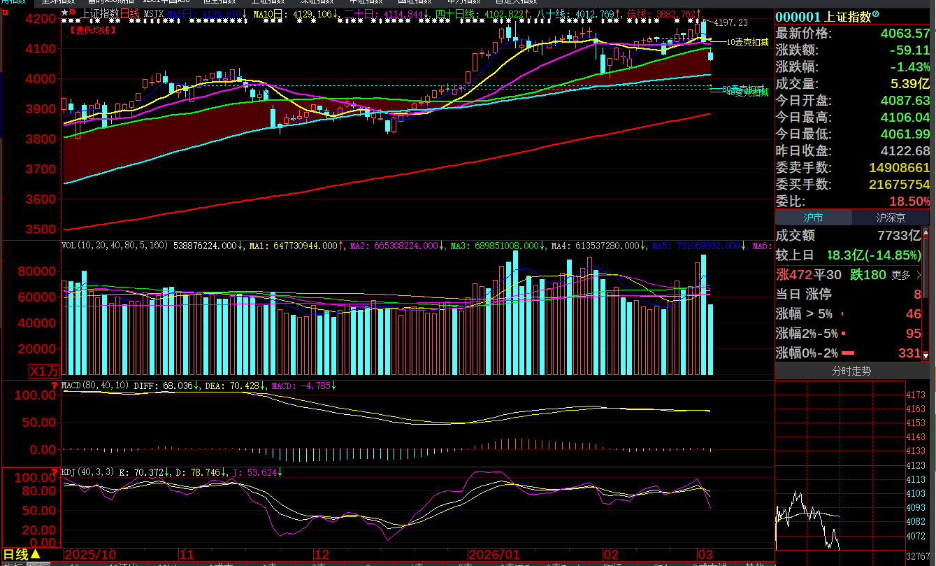 正因为筹码有效锁定,成本垫高,才有2026年2月2日一根2.48%的中黑下跌回测40日均线4107点后获得支撑,当天收盘4015点,横向对比等于回到今年第一个开盘日收盘4023点横盘支撑,说明这个点位俱有稳定支撑后反击基础。