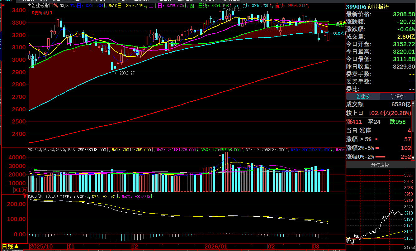 但它的缺点在于收盘3208点低于10~20~40日均线,分别在3264~3279及3304点,三天均线到周二会形成较强的压制,同时周一收盘点未能越过回到80日均线3216点,美中不足,也是其中一个弱项,只能涨不能跌的趋势形态决定了周二及周二以后得演绎。