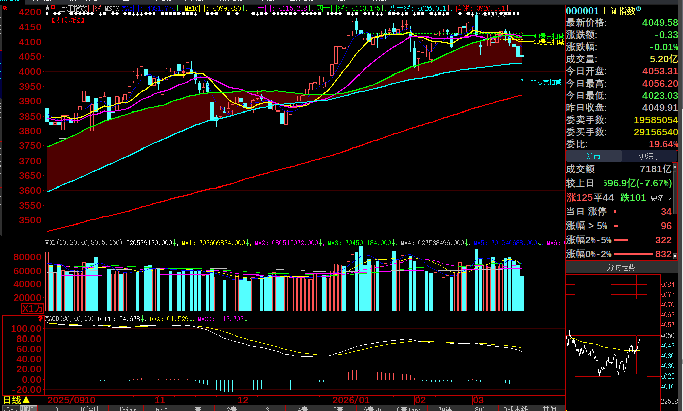 本栏没有说“运行44天后”一定会下跌,至始至终都强调,这是一次“涨势量潮的修整调整”,可以延续到80~88天,在这之前的任何变动都与成交量有关,所以必须盯紧成交量的演变解读。