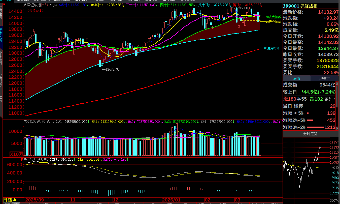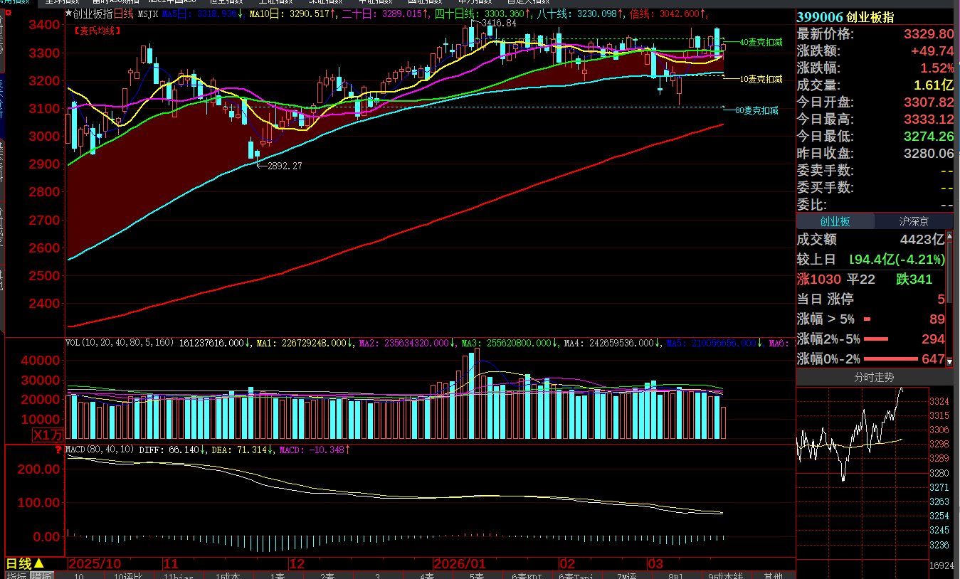 本栏要说的是:经过周二压低洗盘回测后,周三强势拔高突破上涨,一旦越过周二高位就会构成反包的K线形态,这是最重要的图片确认,以深市为主,创业板市场领先上涨,符合前面本栏分析是谈到的状况,因为缩量回测修整后再次放量拔高上扬,这就是最典型的“再垫高成本”后,才到“再加码拉抬”,见证奇迹的时刻到了。