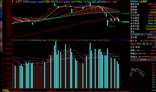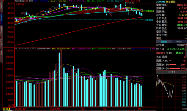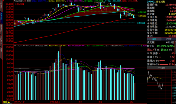 沪市均数量线的持续缩量降到低位量如此,深证成指也如此,创业板指数更明确。只要加上换手率统计,可以清清楚楚感受到量潮的累计与成本,例如创业板指数从2026你3月4日降低到40日均数量线后,持续萎缩至今24天,累计换手率91%,平均价3259点。