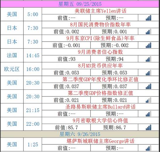 1.美联储主席耶伦周四表示,美国经济前景总体看似强劲,“包括我在内”的多数FOMC委员预计将于年内首次加息。耶伦认为,保持近零利率过长时间可能导致之后突然快速加息的风险,预计加息路径将是“相当渐进的”。