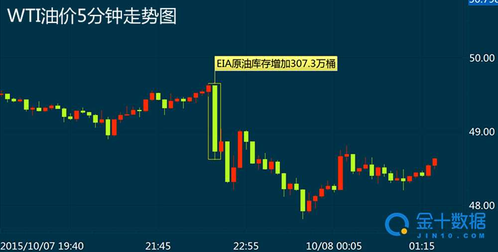 【导读:美国能源信息署(EIA)周三数据显示,截至10月2日当周美国原油库存增幅再次大于预期,为307.3万桶,连续第二周大幅增加,此外汽油库存增加,精炼油库存却下降。国际油价回吐涨幅,截至23:40分,WTI和布伦特油价双双刷新日低分别至47.81美元/桶和51.19美元/桶,抵消了因为原油市场开始逐渐收紧、原油供应下降和需求增加等乐观数据的影响。】