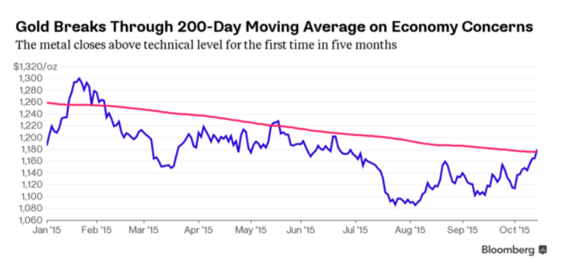 但是最近数月国际经济增长阴霾笼罩,美联储加息的可能性日益下滑,周三金价自5月来首次上行突破200日移动均线水平。