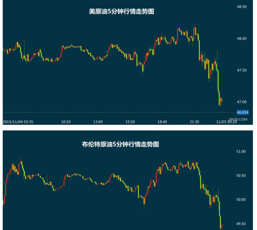 导读: 周三国际油价盘中下挫,因晚间公布的EIA原油库存录得增加,并超出预期。截至10月30日当周EIA原油库存录得增加284.7万桶,高于预期的增加278.7万桶,前值为增加337.6万桶。EIA数据一出,WTI油价盘中一度跌破47美元/桶关口,跌幅破2%;布伦特油价盘中最低时跌破49美元/桶。