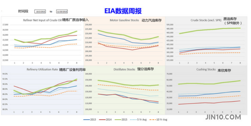 晚间公布的EIA原油库存录得连续9周增加,但增幅不及预期。截至11月20日当周EIA原油库存录得增加96.1万桶,低于预期增加的120万桶,前值为增加25.2万桶。