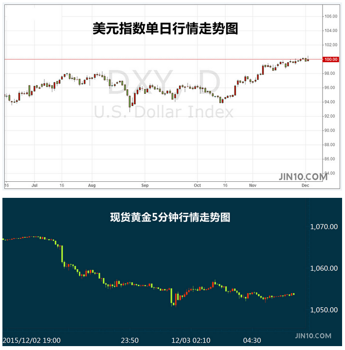 受累于耶伦关于可能会在12月份加息的暗示,欧元兑美元刷新日低,美元指数刷新12年高位至100.51,欧元兑美元刷新日低,金价周三跌至近六年最低水平。