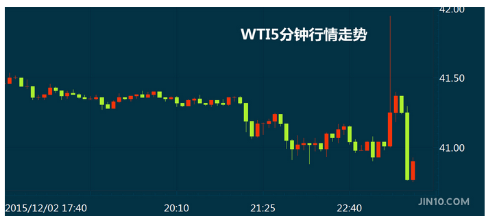 EIA数据公布前油价曾一度上涨,数据公布后,强势美元和意外增加的EIA库存令WTI原油跌幅扩大至2.1%,跌破41美元/桶。