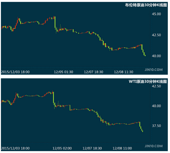 截至北京时间21:57,布伦特原油报39.99美元/桶,跌幅为1.77%;WTI原油报36.7美元/桶,跌幅为2.47%。布伦特原油跌破40美元/桶,为2009年2月以来首次。