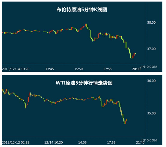 由于欧佩克“阴云”持续笼罩,北京时间周一(12月14日)晚间,国际油价再度快速下跌。WTI原油跌破35美元/桶,为2009年1月来首次,跌幅1.8%。布伦特原油跌逾2%。国际原油期货价格连续第七个交易日下跌,创2014年中以来最长连跌时间,此前国际能源署(IEA)预计明年全球原油供应过剩情况或加剧,这一预期拖累了油价。截至北京时间20:28,布伦特原油报36.78美元/桶,跌幅为2.34%;WTI原油报34.7美元/桶,跌幅为1.62%。