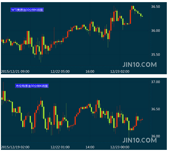 周二,纽约商交所二月美原油合约攀升33美分至36.14美元/桶,涨幅0.92%。欧洲ICE期货交易所布油期货结算价则下跌24美分至36.11美元/桶,创2004年7月份以来新低,跌幅0.7%。本月初至今,美油价格已下跌14%,而布油价格更是下跌了19%。