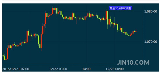 纽约商品交易所2月交割的黄金期货价格下跌6.50美元或0.6%,收于1074.10美元/盎司。此前两个交易日内黄金期货价格连续上涨,两日累计上涨超过30美元。
