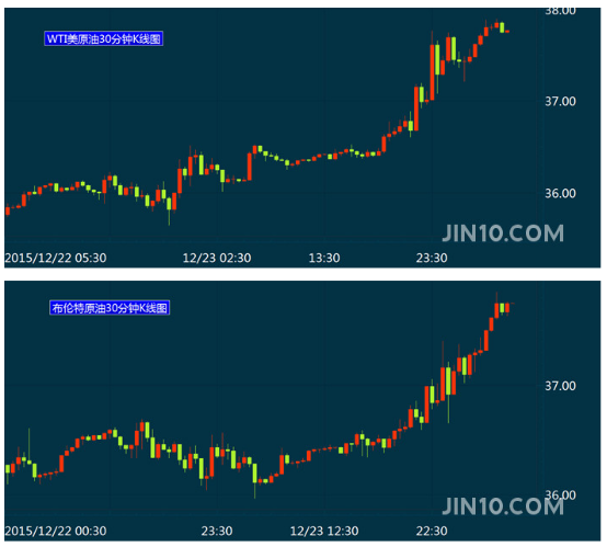 纽约商品交易所2月交割的WTI美原油的期货价格上涨1.36美元或3.8%,收于37.50美元/桶。布伦特原油期货价格上涨1.25美元或3.5%,收于37.36美元/桶。北京时间07:45,美原油现报37.78美元/桶,布伦特原油现报37.75美元/桶。