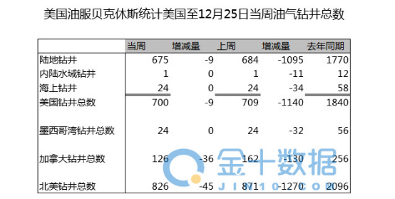 另外,美国当周石油钻井总数因圣诞假期而提前至北京时间周四02:05公布。数据显示,美国至12月25日当周石油钻井总数从前值的541口下降到538口,数量不断减少。