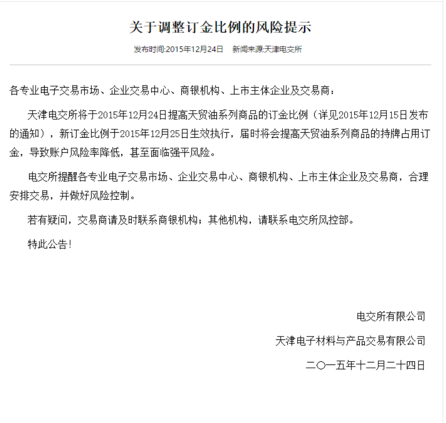 关于调整订金调整比例的风险提醒