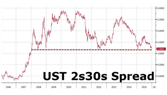 美国国债的收益率曲线在加息后意外的进一步走平,“格林斯潘难题”再次出现,长短债利差已接近8年来最低水平。