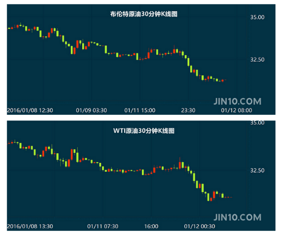 新年油价大跌势头在本周一加剧,油价重挫6%至12年新低,创9月来最大单日跌幅, 美国WTI原油期货价格盘中最低触及30.89美元/桶,跌破31美元为12年来首次。在六日连跌中,布伦特原油期货重挫逾15%,为一年内最大跌势。
