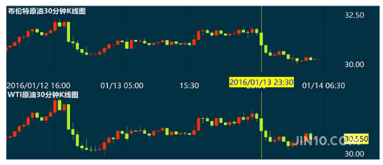 继上日WTI原油盘中跌破30美元之后,北京时间周四凌晨布伦特原油也跌破30美元历史性关口。伊朗制裁或最早在1月19日解除,是布油下挫的重要原因。WTI原油受晚间公布的EIA库存数据影响,再度逼近30美元关口。