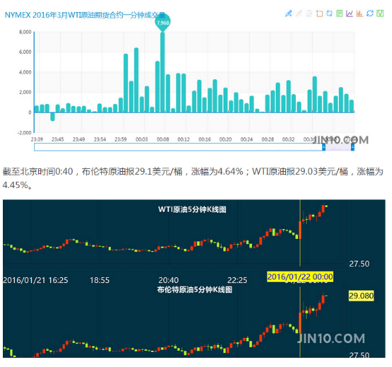 金十独家统计的NYMEX主力原油期货交易量在EIA公布后12分钟成交达4万手,价值约12亿美元买盘涌入令美原油价格从平盘涨逾3%。