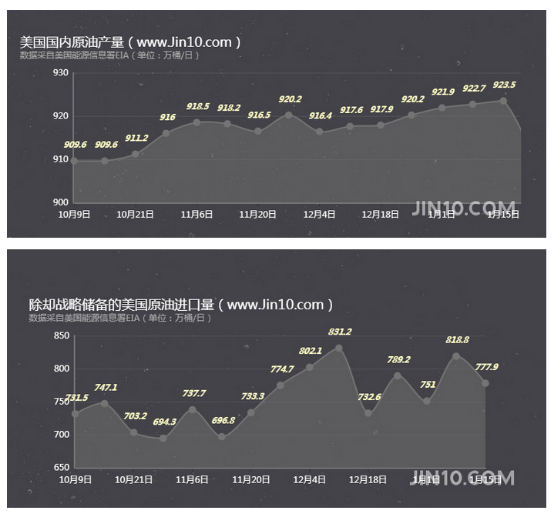 EIA报告中提到,上周美国国内原油产量上升0.8万桶至923.5万桶/日。美国除却战略储备的商业原油上周进口777.9万桶/日,较前一周减少40.9万桶/日。美国原油产品四周平均供应量为1932.3万桶/日,较去年同期下降1.8%。