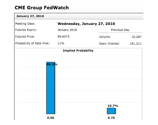 最为权威的加息风向标——芝加哥商品交易所(CME)的美联储基准利率期货市场(Fed Fund futures)最新发布的加息概率显示,1月28日加息的概率仅10.7%。