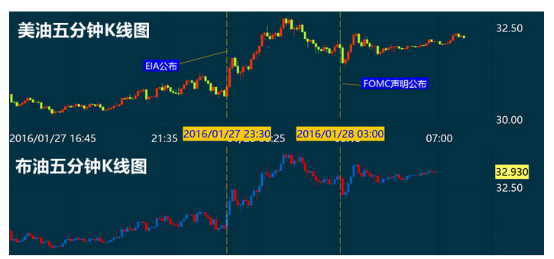 美国WTI原油3月期货周三(1月27日)收涨0.85美元,或2.70%,报32.30美元/桶;布伦特原油3月期货周三收涨1.30美元,或4.09%,报33.10美元/桶。虽然美国上周EIA原油库存大幅增加,但寒冷气候令精炼油库存大降为油价提供了支撑,同时受益于市场逼空现象以及美联储维持利率不变后美元小幅回落,油价日内完成逆市反弹。美国WTI原油期货价格盘中最高触及32.83美元/桶,布伦特原油期货价格盘中最高触及33.49美元/桶。