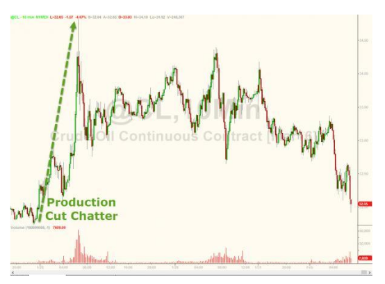 海湾国家OPEC代表们不支持召开紧急会议,意味着OPEC国家们采取共同行动提振油价的预期下降,油价跌幅进一步扩大。目前,美油跌4.4%,布油跌3.6%。美油盘中跌破32美元,布油达到34.4美元一线。