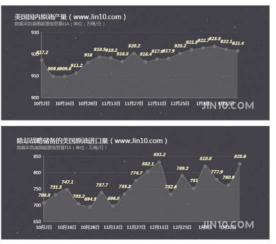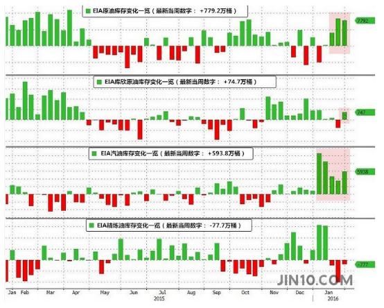 周三晚间国际油价,美国能源信息署(EIA)公布的当周原油库存录得大幅增加。截至1月27日当周EIA原油库存录得增加779.2万桶,预期值为增加476万桶,前值为增加838.3万桶。美国原油库存自1930年以来首次高于5亿桶,EIA数据公布后,国际油价短线暴跌。