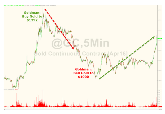 就短期而言,如果投资者遵从高盛关于黄金方面的建议,那可能会亏到欲哭无泪了。