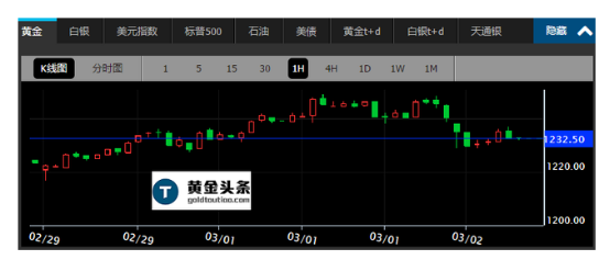 2.海外技术分析机构FX Empire周二(3月1日)在报告中表示,周一金价一度有所走低,但在1220美元/盎司寻得支撑,金价回升,形成看涨形态。黄金市场处在三角形态内,这也是近期金价盘整的重点。目前黄金在寻求建立更多动能来上行突破,继续长期的上行趋势。金价回落将是买盘机会,因此金价将上行突破。