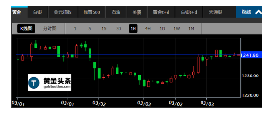 7.瑞讯银行(Swissquote Bank)在周三(3月2日)报告中写道,黄金短线上涨动能减退,金价自1253阻力下方回落,但整体依然看涨。日线阻力位于1263(2016年2月11日高点)。小时图形关键支撑位于1211(2016年2月26日低点)。
