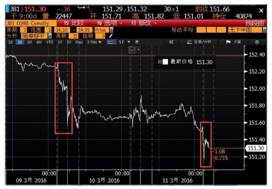 日本10年期国债3月期货今日亚市开盘瞬间下挫0.3%。同时日本10年期国债收益率今早上涨3.5个基点至0.015%,此为2月18日来最高水平,也是自2月22日来首次升至零上方。