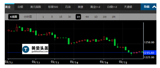现货黄金周一亚市早盘开于1249.46美元/盎司,最高触及1261.00美元/盎司,最低下探1228.90美元/盎司,收于1235.20美元/盎司,下跌14.50美元,跌幅为1.14%。