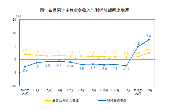 国家统计局数据显示,1-3月份,全国规模以上工业企业实现利润总额13421.5亿元,同比增长7.4%,增速比1-2月份提高2.6个百分点。3月份,规模以上工业企业实现利润总额5612.4亿元,同比增长11.1%。国家统计局表示,3月份工业利润增速回升,有经济向好因素,也有恢复性质。