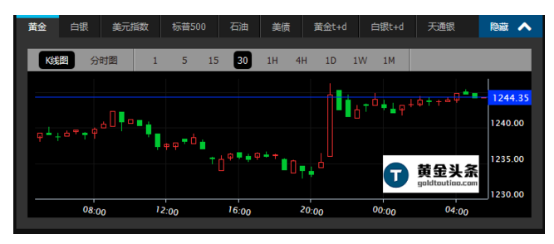 现货黄金亚市开于1237.59美元/盎司后进入区间盘整,小幅波动后震荡下跌。欧市延续下跌走势,录得日内低点1231.10美元后触底反弹,多头突然发力,直线上涨,录得日内高点1244.80美元再度进入盘整。美市小幅震荡,多空拉锯,终收于1242.46美元/盎司,上涨0.4%。