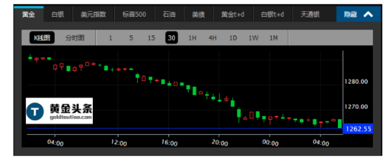 现货黄金周一亚市开于1288.30美元后随即下挫,该开盘价即当日最高价。期间多头虽有反弹,但力量微弱。欧市延续跌势,跌幅加大。美市跌势有所减缓,一度小幅反弹但随后延续跌势,录得日内低点1261.49美元,之后触底反弹有所企稳,最终收于1265.00美元/盎司,下跌1.8%,创下了自2月16日来最大单日跌幅。