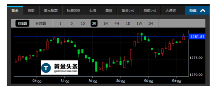 现货黄金周二亚市开于1271.00美元之后震荡上行,走出一波上涨行情后掉头朝下,空方控盘。欧市延续跌势,录得日内低点1269.10美元后,之后盘整陷入僵持。美市多方再度大幅拉升,录得日内高点1282.00美元后,又再度下跌,走势如过山车,最终收于1278.60美元/盎司,上涨0.4%。
