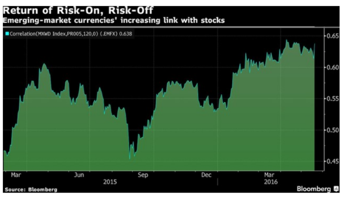外汇市场和股市之间的相关性在今年早些时候达到了一个小高峰,当时全球主要股市大跌之际,新兴外汇市场也在上演同样的情景。现在,随着人们将迎来一系列挑战,从下个月的英国退欧公投,到美联储的会议,再到11月的美国大选,这种相关性正再一次增加
