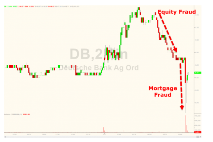 首先是路透报道称德意志银行因为股票交易作弊被罚4.5亿欧元。随后彭博又爆料称,德意志银行正受到美国证监会调查,该行可能涉及在2013年期间夸大按揭债券交易业务的价值,以掩盖其损失。