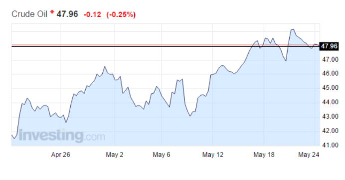 自高盛5月16日发布报告以来,WTI原油已上涨近3%。